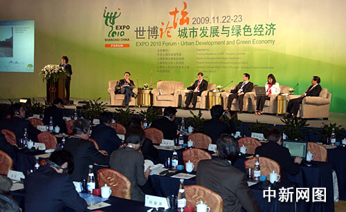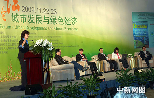 11月22日,世博论坛——城市发展与绿色经济在上海松江开幕。在当天下午的专题论坛上,美国奥克兰市市议会议长简·布莱尼、美国圣安东尼奥市绿色工作委员会主席莱瑞·金、中国信阳市市长郭瑞民、美国库比蒂诺市副市长胡宜兰、中国洛阳市市长郭洪昌等中外城市管理者同台热议“绿色经济”。张亨伟 摄