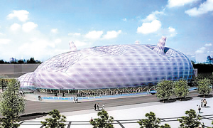 除了能够提供能量,紫蚕岛的外衣也能在炎炎夏日给自己降温。据介绍,连接小气枕之间的金属扣件上设置了许多小喷头,天气炎热的时候可以对气枕持续喷洒,形成一层流动的水膜,在带走热量的同时还使外衣表面一尘不染,时刻晶莹剔透。紫蚕岛的外衣虽然担负的功能强大,但是它却一点也不臃肿沉重。“紫蚕岛使用的膜和奥运场馆水立方使用的是同一种,这种膜结构还能有效减轻建筑物总重量。”设计师介绍说。