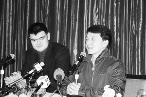 姚明拄着比成龙还高的双拐首先抵达发布会现场,成龙随后一阵小跑进了会场。这是两位世博形象大使在三天中第二次共同出现。