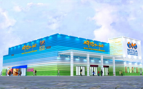 上海世博会世界贸易中心协会馆位于上海世博园区B片区,建筑面积达2000平方米,设计灵感主要来自中国哲学的“天圆地方”和“八卦”。展馆的中央设计成圆型的展览厅,而内部正方形的四个角落则分别设为贵宾接待室、展示区、纪念品店及餐饮区。