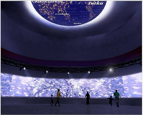 世界贸易中心协会馆的多功能展览厅,拥有极广阔的视像屏幕