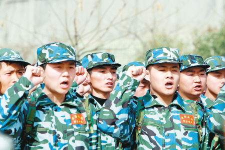 队伍第一排中间的保安挺显眼,白白净净,一脸的书生气。他叫侯澎,今年24岁,刚从西安铁路职业技术学校电气自动化专业毕业,为了参加上海世博会安保,侯澎放弃了专升本的机会。“跟其他队员相比我在专业技能方面有些差距,但经过三个月的强化训练,我现在自信十足,恨不得马上飞到上海!”(王飞 王婷)