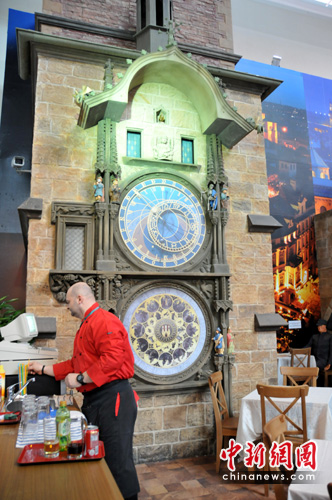 “现代都市的历史遗产保护”是布拉格案例的展示主题。展馆内展出了布拉格天文钟、查理大桥等名胜古迹。