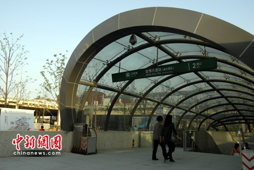 轨道交通世博专用线在园区内有两个站点,分别为浦西园区的卢浦大桥站、浦东园区的世博大道站。运营时间为9:00-24:00。