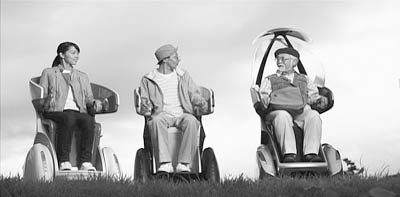 下一步,飞毯、飞椅都该出来了,一套空中立体交通管理办法也相应出台,比如飞毯只能行进在第几百米到几百米的高空,飞椅该怎么左转,什么速度飞,都有规定。公共交通则完全是类似流水线或传送带的样子,遍布于城市各层高空的干道,换乘时启动升降系统。
