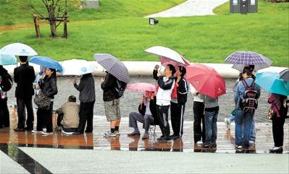 虽然一些热门场馆昨天10时后仍需两小时左右的排队才能进入参观,但大部分场馆等候时间一般在30分钟左右。“一天下来,看个七八个馆是没问题的。”在沪上银行工作的黄小姐告诉记者,她原本买了5月2日的票,但不想凑热闹,昨天见下雨便调休来看世博了。(尤莼洁)