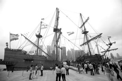 昨天下午,当 “安达卢西亚”号在上海国际客运中心缓缓靠岸时,没有汽笛的喧嚣,没有引擎的轰鸣,只有岸上热烈的掌声和船员们欢快的笑声。这艘保持了17世纪马尼拉帆船外形的三桅大船从去年12月开始建造, 3个月前从西班牙南部的塞维亚港口出发,一路穿越地中海、红海、亚丁湾和印度洋,终于驶入黄浦江。