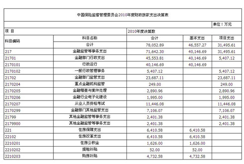 关于中国保监会2010年度收支决算总表的说明