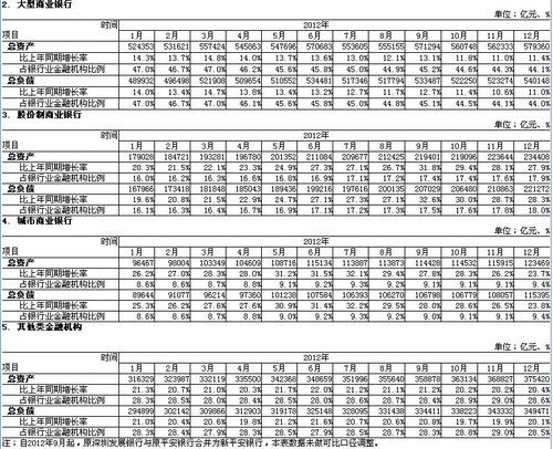 其中,大型商业银行2012年总资产达57.94万亿,比上年同期增长11.4%;大型商业银行2012年总负债54.01万亿,比上年同期增长11.0%。(中新网金融频道)