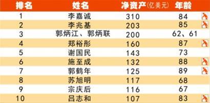 华人前十大富豪六人超80岁 接班人压力大