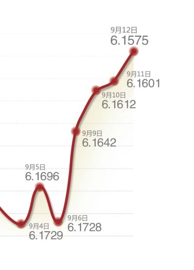 从即期市场来看,昨日即期市场上人民币对美元汇率早盘保持平稳。9月以来,人民币对美元即期汇率走势稳健,并未表现出较明显的涨势,但相对于亚洲一些新兴市场货币表现坚挺。根据中国外汇交易中心数据计算,本周的4个交易日,人民币对美元汇率中间价累计升值153个基点。昨天人民币对美元汇率中间价达6.1575,突破了今年6月17日创出的6.1598的前期新高。