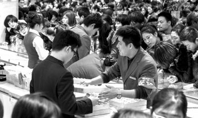 金店新年开门遭“抢” 菜百日销售额达到两亿