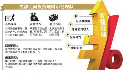 目前,成都以民间投资理财、融资理财等为经营内容的公司,大大小小接近1000家,其中鱼龙混杂,此次集中清理和整治,也将进一步规范民间理财市场。