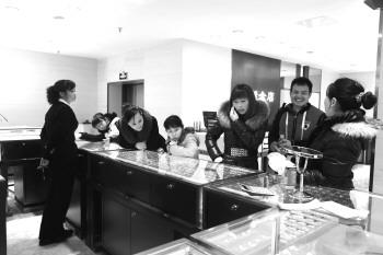 每当金价有了波动,都会有很多市民去金饰品店来探看价格。 本报记者 韩逸 摄