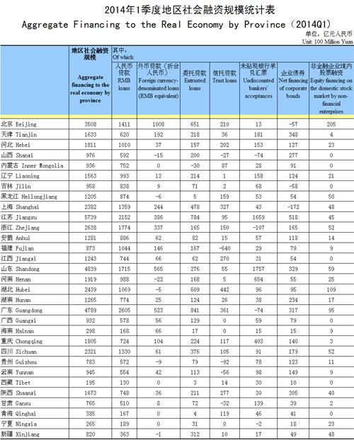 1季度地区社会融资额达53184亿 苏鲁粤排前三