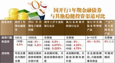 日前,国家开发银行发布公告称,该行将于5月5日至9日通过银行间债券市场和商业银行柜台同时发行一支1年期金融债券。这意味着,今后市民在银行柜台除可以买国债外,还可购买到另一种高信用等级利率债。而此举是继2002年记账式国债开展商业银行柜台交易后,高信用等级利率债时隔12年再次进入商业银行柜台领域,为市民投资金融债券开辟了一条新渠道。