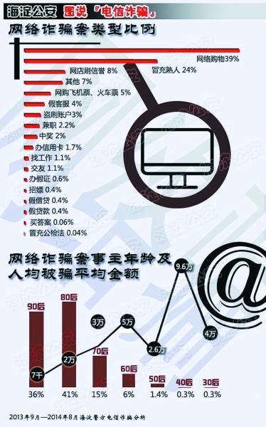 (记者林靖)据海淀警方对近一年来诈骗案最新统计显示,其实80后和90后的年轻人更易受骗,中招者占总数的71%,而50岁以上的中老年人被骗者仅占16%。不过,中老年受骗者财产损失严重,人均损失超过8万元。为防银行柜台拦截诈骗,目前骗子不仅越来越紧盯开通网银的年轻人,还诱骗老年人开通网银汇款,近半被骗者都是通过网银汇款的。