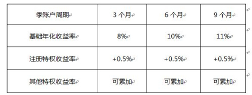 季账户:3个月、6个月、9个月,更多选择,更高收益