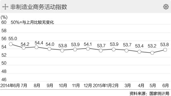 国家统计局1日公布6月制造业采购经理人指数和非制造业采购经理指数。其中,制造业PMI和上个月持平于50.2,略低于预期,显示经济增长压力仍大;但非制造业PMI则从上个月53.2小幅改善至53.8,结构转型成效明显。