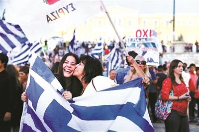 7月5日,希腊雅典,左翼联盟支持者、反对债权人改革计划的希腊选民庆祝公投结果 供图/IC