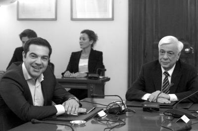 ▲7月6日,在希腊雅典总统府,希腊总统帕夫洛普洛斯(右)与希腊总理齐普拉斯参加各政党领导人会议。新华社发