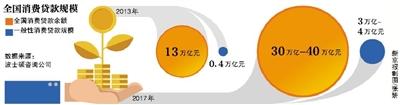 根据波士顿咨询公司(BCG)数据,截至2014年,个人消费贷款余额大约是7.7万亿元人民币,预计到2018年将增长至17.5万亿元。