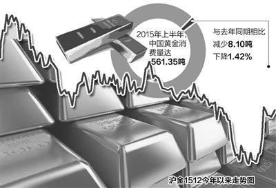 数据显示,今年上半年,中国黄金消费量为561.35吨,与去年同期相比减少8.10吨,下降1.42%。