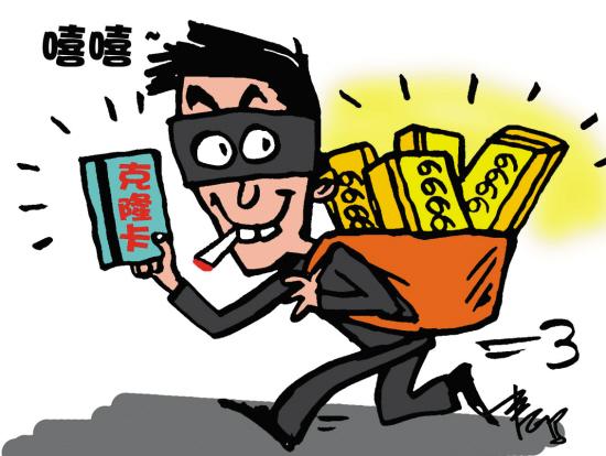 后来,该案告破。原来,犯罪分子当天用邓先生的克隆卡在深圳金地珠宝公司刷卡214.63万元,买走了8公斤左右的金条。但是,该案的主犯未被抓获,赃款仍无法追回。