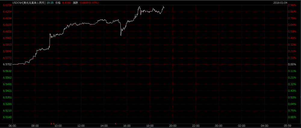 “短期内,从一个过去几乎没有波动的货币,变成大幅波动的货币,这个速度确实有些快,对市场情绪影响较大。”昨日(1月4日)德国商业银行亚洲高级经济学家周浩对《第一财经日报》记者说道,而就在采访期间,离岸人民币二度冲击日内低点,瞬间击穿6.63关口,日内贬值幅度已超过600个基点。