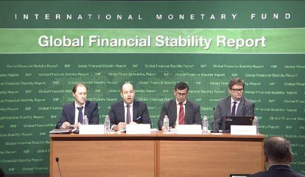 IMF4日发布了2016年《全球金融稳定报告》。图为当天IMF在总部召开发布会的视频截图(国际货币基金组织网站)