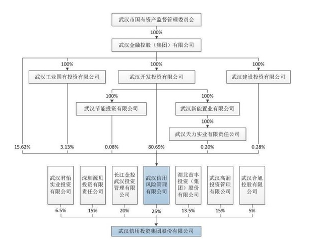 16日,荆楚网记者登录“全国企业信用信息公示系统”发现,在“工商公示信息”栏中确实显示武汉信用投资集团股份有限公司的股东为武汉高润投资管理有限公司和长江金控武汉投资管理有限公司。但在“企业公示信息”栏查阅“2014年度报告”却显示,武汉信用投资集团股份有限公司的股东有7个,分别为武汉君怡实业投资有限公司、武汉合旭控股有限公司、武汉高润投资管理有限公司、武汉信用风险管理有限公司、深圳源贝投资有限责任公司、湖北首丰投资(集团)股份有限公司和长江金控武汉投资管理有限公司。其中,控股股东为武汉信用风险管理有限公司,持股比例为25%。继续查询发现,武汉信用风险管理有限公司的实际控制人是武汉金融控股集团,最终控制人是武汉市国资委。