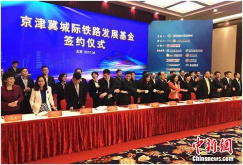 中新网4月21日电 日前,兴业银行子公司兴业信托携手该行北京分行与京津冀城际铁路投资有限公司在北京签约,参与设立京津冀城际铁路发展基金。