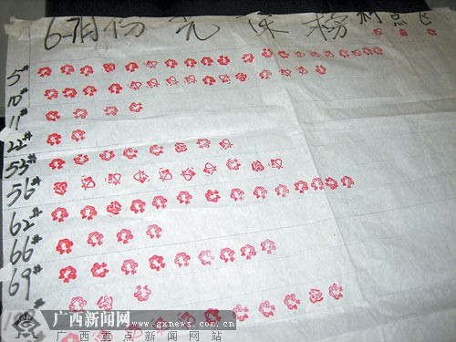 据称,这个光荣榜上的小红戳均只代表给予卖淫女的精神嘉奖。