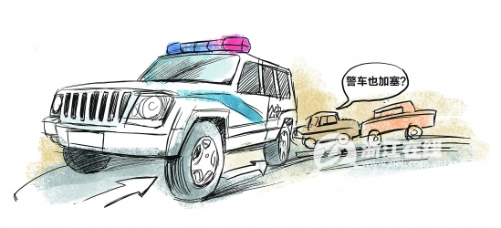 然而,网友“tcjun2000”在网上发了个帖子,说警车“浙B0806警”也在“加塞”。帖子后面还附有一张警车停在逆向车道上的照片。