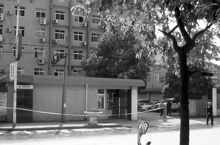 记者昨日下午在现场看到,警方已在案发现场的保安室及自动取款机机房周边拉起了警戒线,数名民警正在保安室进行现场调查。记者通过门窗看进去,该保安室是一个套间布局,外面是一间值班室,里面是一间休息室,值班室的墙壁上和地面上满是血迹。隔壁的银行自动取款机加钞间房门已遭到破坏。