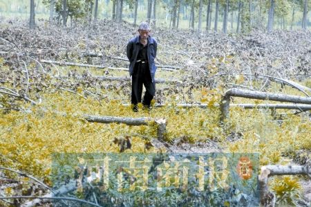河南中牟20余亩树被砍 村民称农田种树违法(图)