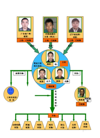 2008年起,“三姐”的儿子韩某和准儿媳周某前来帮忙,周某的姐姐也参与了进来。仅2010年至今,潘某等人从广东省的福建籍嫌疑人谢某、河南省漯河市嫌疑人“阿义”和辽宁省沈阳市嫌疑人刘某等人手里以低价购进大量假冒伪劣卷烟。韩某及未婚妻周某等人负责接货、送货。假烟通过不同运输渠道运输到哈市后,韩某等人将假烟加价后以批发、零售方式销售给哈市及本省其他市县,同时还延伸到了吉林省一些市县。