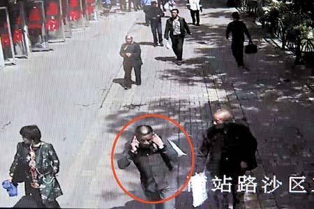 5月27日,在沙依巴克区南站路,监控拍下嫌疑人(红圈内)作案视频。(视频截图)