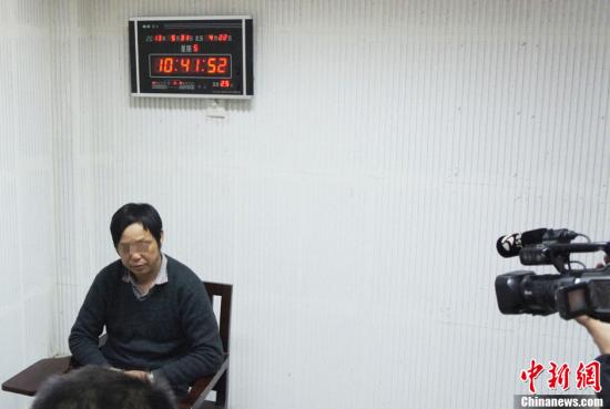 5月31日,投案自首的凶手面对镜头,对其犯罪事实供认不讳。5月30日早上,11岁的小许在南京市江宁区岔路口经盛路段上被人朝脸部泼洒了不明液体,造成面部和胸部严重烧伤,在南京市儿童医院重症监护室接受治疗。随后,江宁警方发布了嫌疑人照片,悬赏一万元缉拿凶手。据初步调查发现,凶手蔡某是小许母亲的男友。31日凌晨3点40分左右,迫于压力,凶手蔡某在他哥哥陪同下,来到江宁公安分局投案自首,对其用硫酸泼孩子一事供认不讳。目前警方正在进一步调查。中新社发 寒单 摄