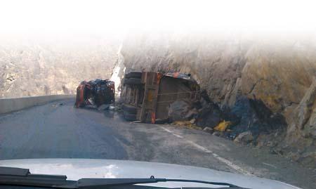 “快!G217线发生了车祸,造成路面污损……”5月30日9点30分许,独山子分局接到路政人员的来电,急匆匆地赶往独库公路。昨日,记者从奎屯公路管理局独山子分局了解到,当天事故发生在独库公路K628处,一名驾驶半挂油罐车的司机因疲劳驾驶,撞上公路内侧山体,导致车辆侧翻,车体严重损毁,所幸人员未受到伤害。