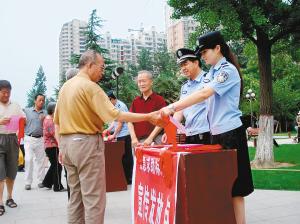 据了解,宝鸡警方昨日在市区及各县同时启动这一活动,共发放“红丝巾”13万条。