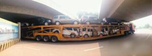 昨日上午,一辆来自上海的半挂车运载着12辆路虎车,途经浐河东路时卡在了新浐桥与广安路的立交桥下,两辆价值百万的路虎越野车车顶受损。