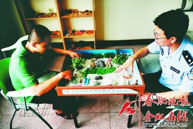 民警带着戒毒者玩沙盘游戏,这个器具是矫正戒毒人员手脑反应配合的