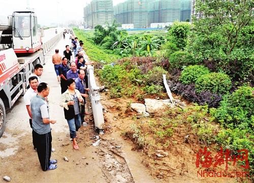 引桥桥头的缺口,死者当时就站在这里,被迎面而来的豪车撞飞