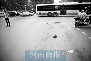事故现场留下许多血迹 河南商报记者 邱晓峰/摄