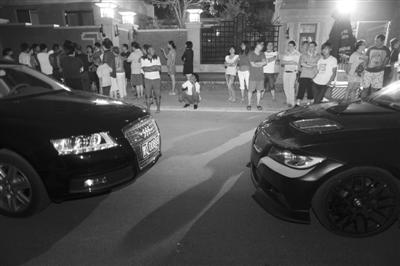 2011年9月7日凌晨,西山华府小区南门,宝马奥迪两车被居民堵在路中间。6日晚,两车上的两名男子因纠纷打伤一对夫妻,后证实其中一人为某歌唱家之子李某,其因寻衅滋事,被处收容教养1年。新京报资料图片 浦峰 摄