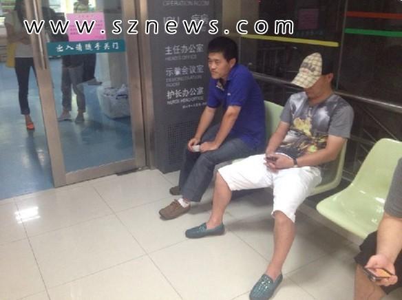 11点左右秦老太被送近ICU,儿子崔先生(左)在焦急等待。深圳新闻网记者 刘梦婷 摄
