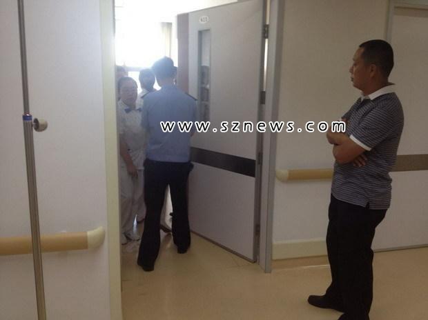 7月29日16:00时,深圳市人民医院,由于院方不愿意透露事件相关者的住院信息,记者几经辗转才找到了砍人者何某所在的病房,病房门口有警察把守,警方拒绝了记者进去采访的要求,称晚些会公布案情进展。