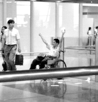 嫌疑人冀中星手持自制爆炸装置在首都机场。