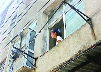租户小芳在事发的窗边向记者讲述事件过程时,仍心有余悸 见习记者胡琴沁 摄